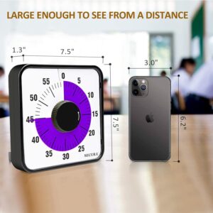Secura 60-Minute Visual Countdown Timer, 7.5-Inch Oversize Classroom Visual Timer for Kids and Adults, Durable Mechanical Kitchen Timer Clock with Magnetic Backing (Purple)